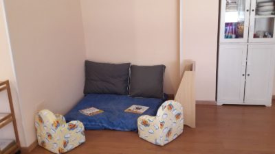 - L’angolo morbido, in cui potranno rilassarsi su un morbido tappetone, farsi leggere una fiaba o guardare un libricino posto nella libreria.