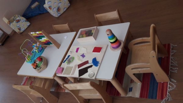 - I tavolini e le seggioline ad altezza bambino su cui fare attività ludiche di vario tipo e usare per mangiare;